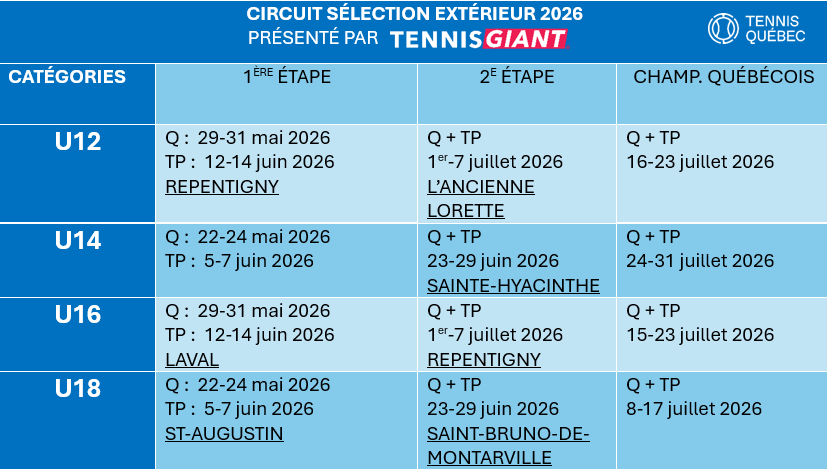 Découvrez les dates du circuit de sélection incluant les étapes et le Championnat Québécois pour la saison extérieure 2026!