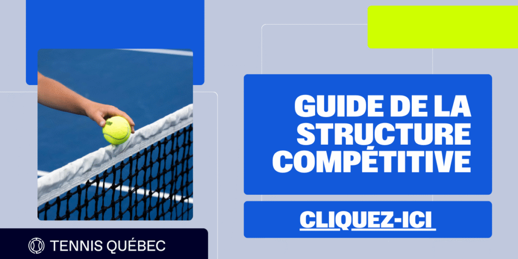 Le tennis compétitif junior au Québec regroupe une grande diversité de tournois et de catégories, encadrés par Tennis Québec à travers plus de 400 compétitions sanctionnées chaque année. Afin de mieux informer et accompagner les parents, les jeunes joueuses et joueurs, le personnel entraîneur, les arbitres et les responsables d’événements, la fédération a créé le guide de la structure compétitive, un outil clair et accessible pour comprendre et s’orienter dans le parcours compétitif au Québec.
